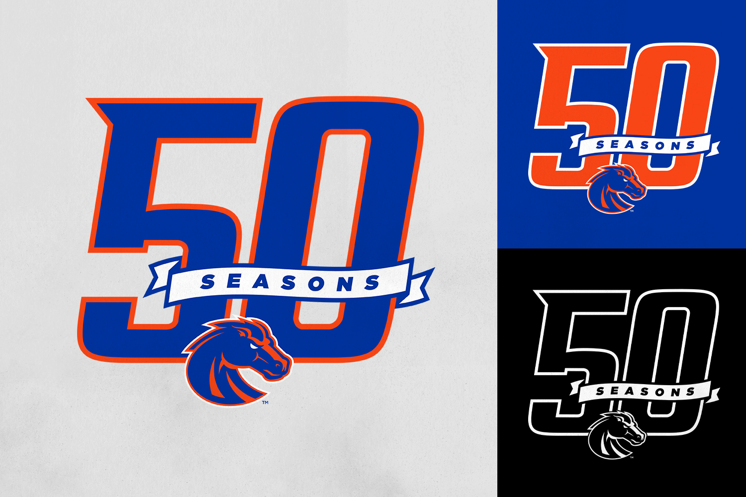 This mark was created to celebrate 50 seasons of Boise State women’s basketball. Designed for print, digital, and embroidery, the logo pulls from the Broncos’ custom-made jersey numeral set.