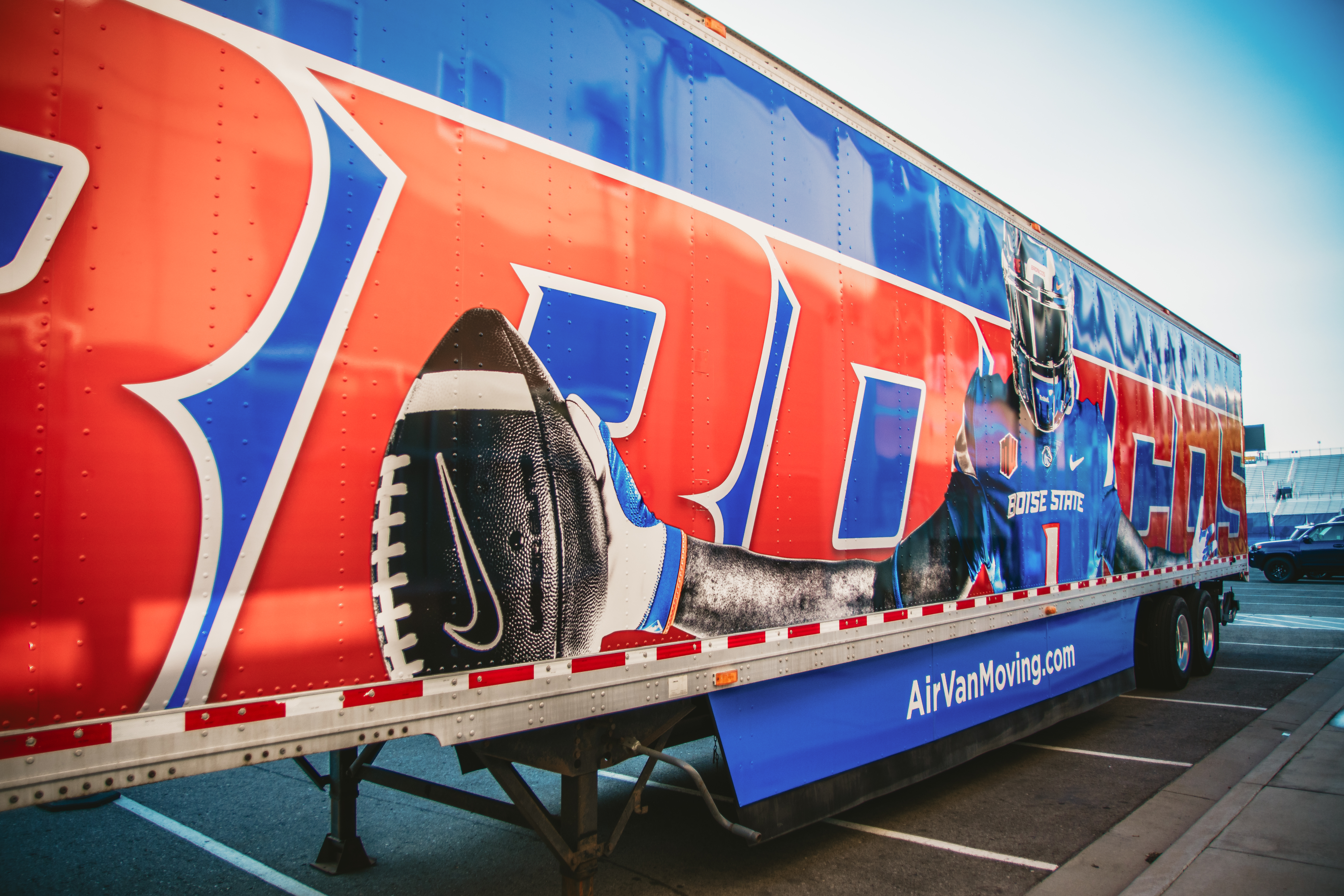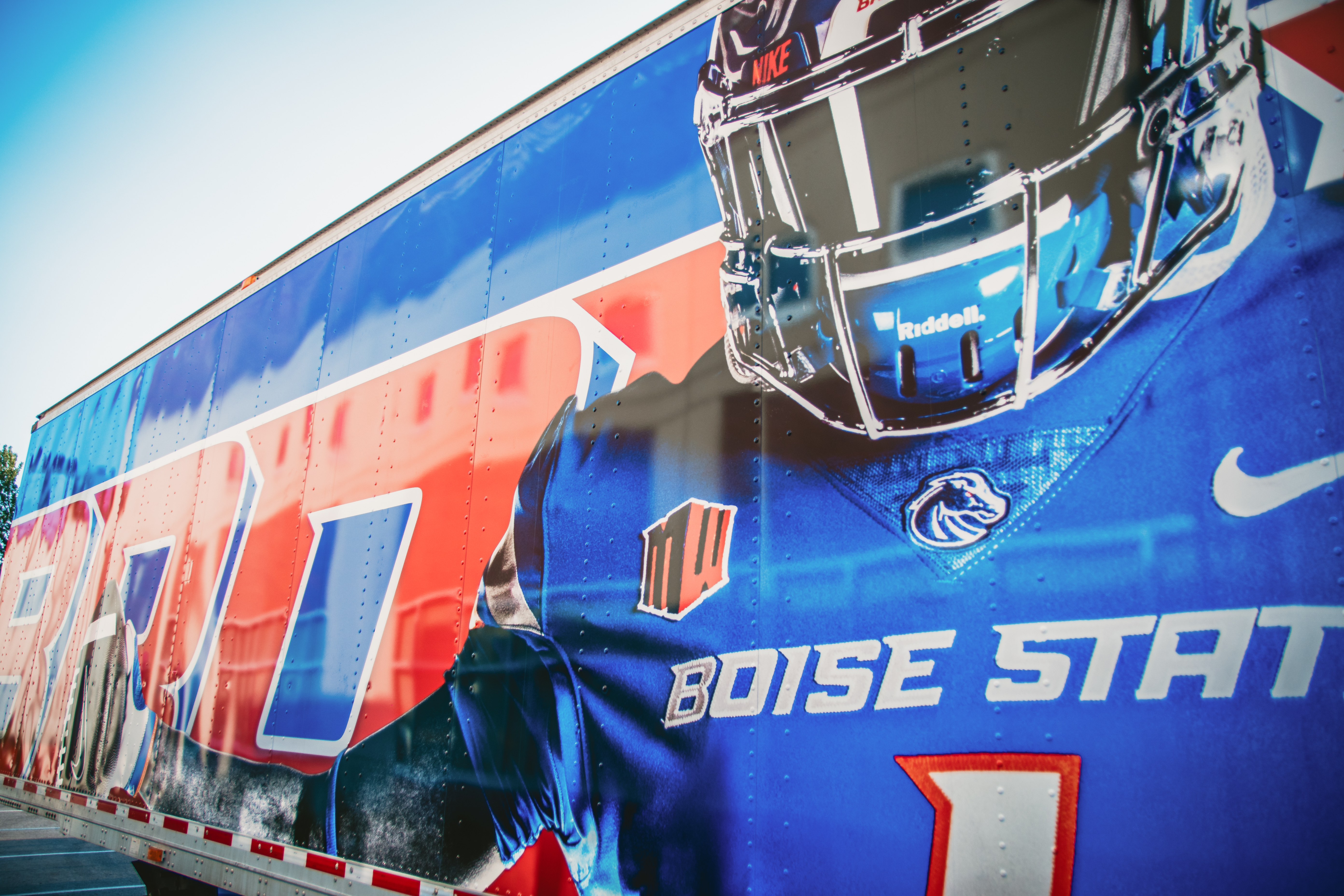 Redesign of Boise State football’s equipment trailer wrap, highlighting motion, bold colors, and visually stunning imagery. The brand of the program needed to be immediately recognizeable on the highway through use of iconic logo usage and a distinctive design.