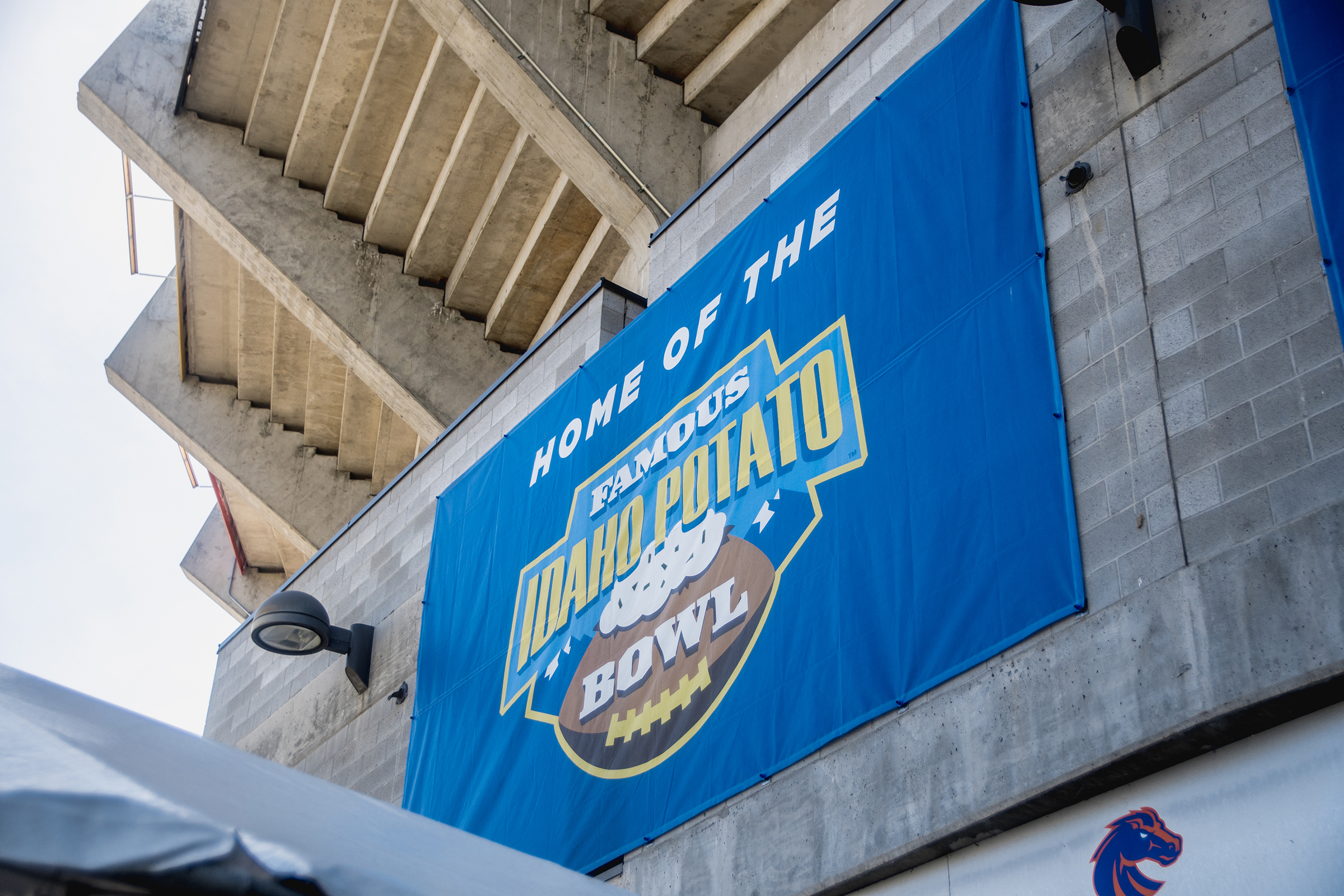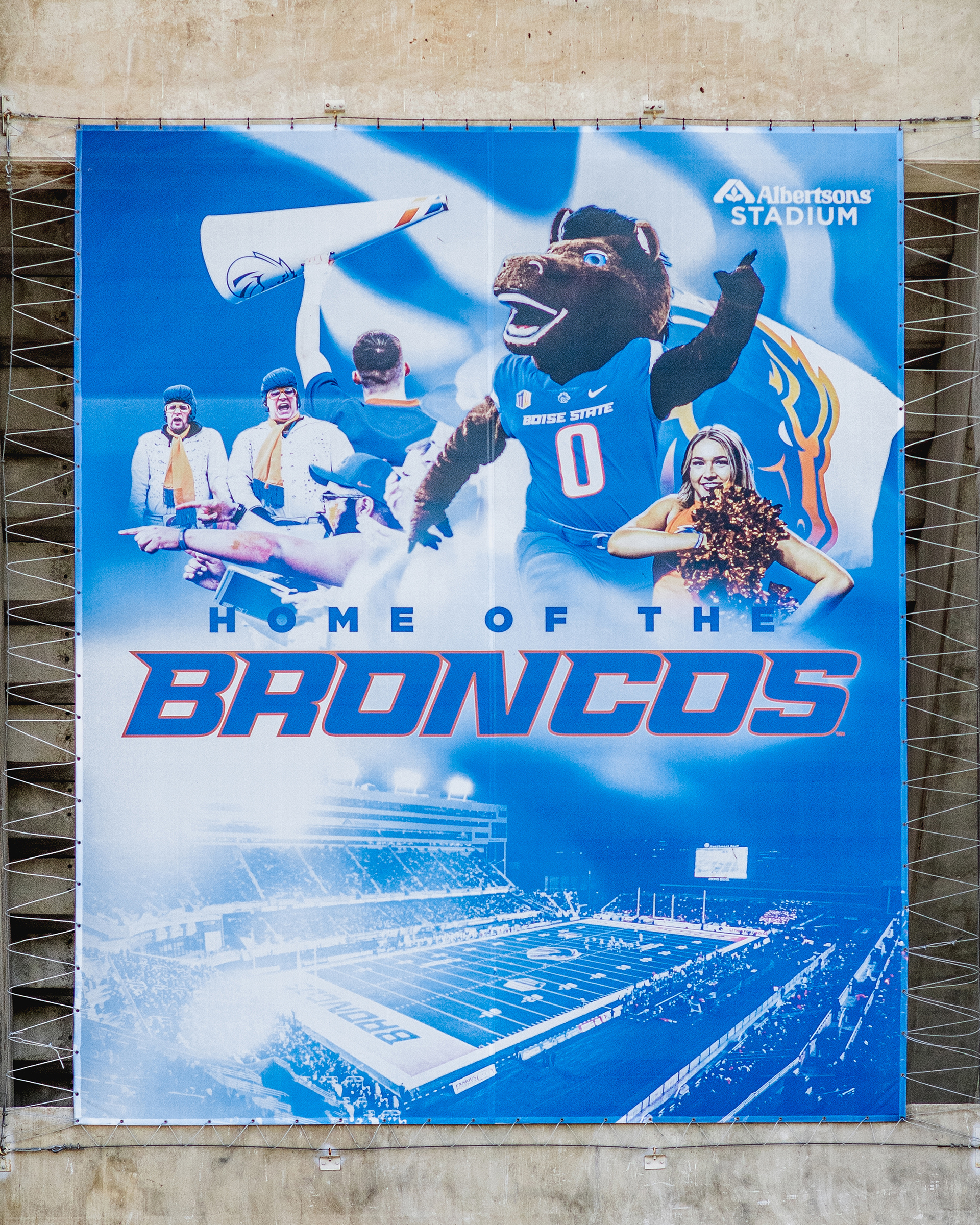 The 2021 rendition of Boise State football's annual 25’ x 35’ stadium banner set, highlighting a new direction of the program with bold, distinct colors and iconic imagery in order to be visually engaging to those passing by campus.